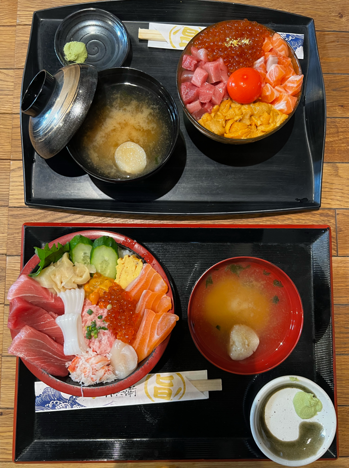 海鮮丼にジンギスカン、ソフトクリーム、、