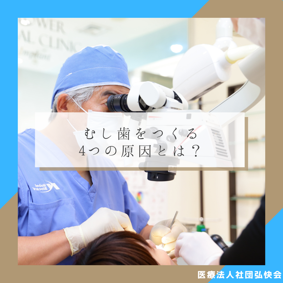 本日はむし歯をつくる4つの原因についてお話しします。