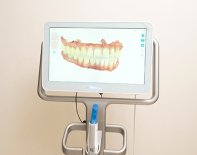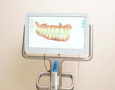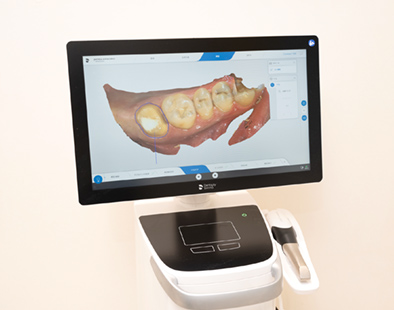 口腔内スキャナーによる負担の少ない型取りを行います。