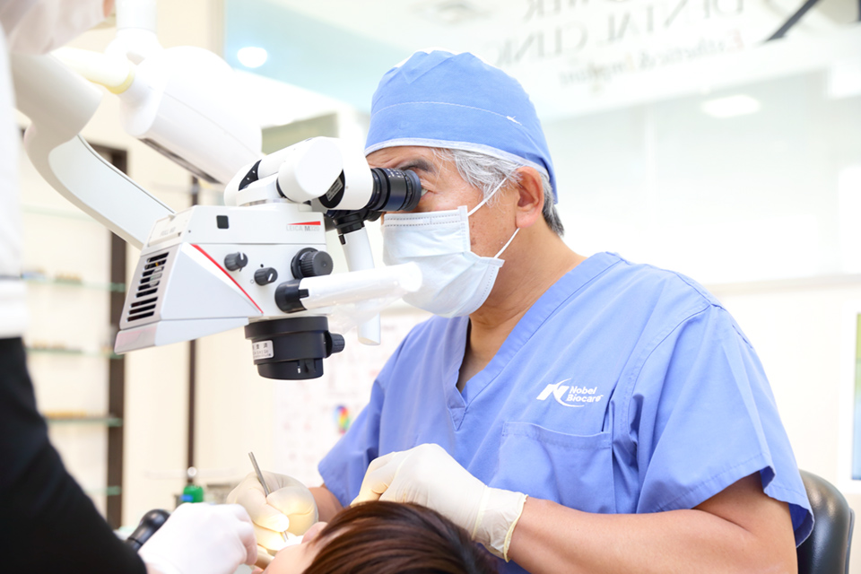 歯根端切除術において、顕微鏡を用いた精密治療を実施。