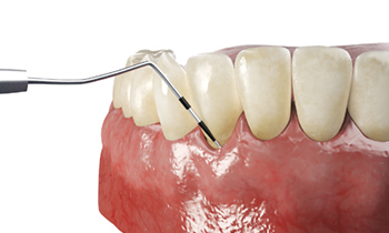 次に、歯科医師は「歯周ポケット」の深さを測定します。これは、歯と歯肉の間にある「ポケット」の深さを特殊な器具を使って計測するものです。正常な状態ではこのポケットは浅いのですが、歯周病が進行するとポケットは深くなります。